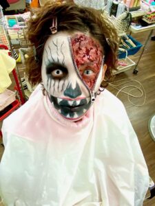 チャック(持参)や血のり、半顔+半顔、アート